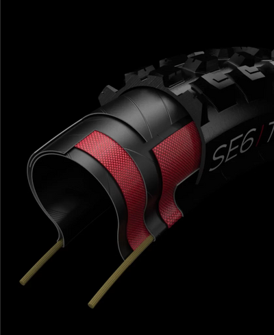 SE tires are equipped with the advanced Core Strength Casing, providing an extra layer of puncture protection through a nylon sub-tread insert and reinforced sidewall inserts. This design positions SE as an excellent option for riders with an aggressive style, particularly those tackling rocky trails or seeking the added support of a sturdier sidewall during high-speed cornering. Ideal for enduro racing and riders who demand a tire capable of withstanding the most challenging trail conditions, SE with Core Strength Casing stands as the perfect choice.
