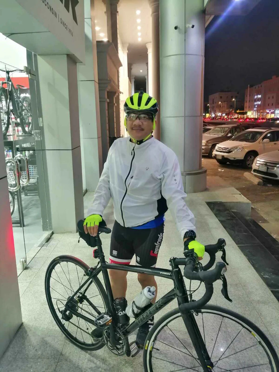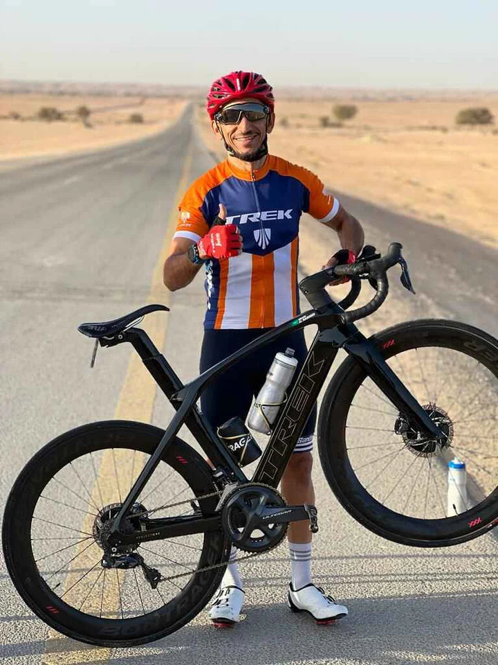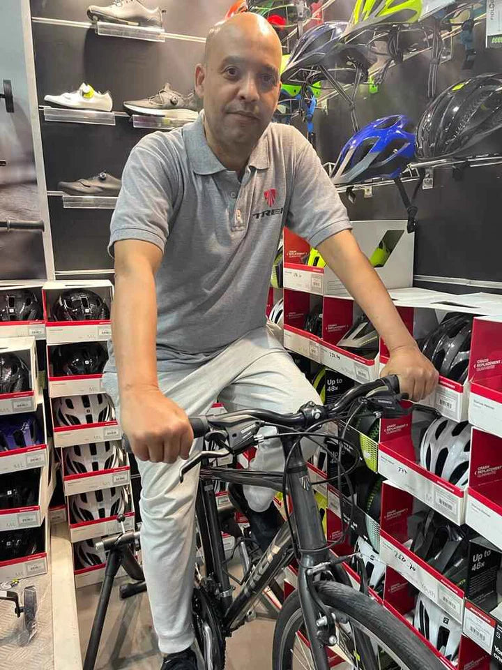 أعمل في تريك المملكة العربية السعودية ... بدأت عملي في عائلة تريك في 18 سبتمبر 1994. بدأت العمل من مهنة ميكانيكي إلى بائع. أنا راكب دراجة MTB وهي اكس كاليبر 7.