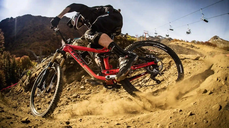 When you brake, the front wheel compresses, and the rear shock extends, causing both to stop functioning optimally. The rear wheel rises above the rough terrain, creating a feeling of bouncing, and you lose confidence as the suspension systems become ineffective exactly when you need them most. This leaves you with the choice of braking right before an obstacle, disrupting your flow, or attempting to race through parts of the trail you’re not fully confident riding aggressively.