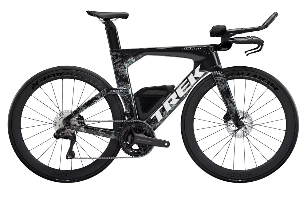 This bicycle has a frame made of the incredibly light OCLV carbon 800 series, disc brakes for excellent stopping power, a saddle for a high aerodynamic position, a Speed Concept full foil carbon fork, IsoSpeed for smooth driving, and a 12-speed wireless electronic shifting Shimano Ultegra Di2 drivetrain. This bike also has aerodynamic Bontrager wheels and integrated food and water storage.